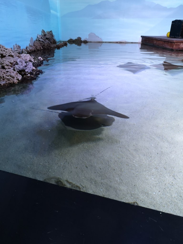 Vi besökte Den Blå Planet 1 April 2023. En lördag. En dag då alla Danmarks barnfamiljer också verkade bestämt sig för att besöka stället. Nja, såklart skojar jag nu. Det kändes bara så för mig. troligen hade en eller två barnfamiljer stannat hemma! Fniss. Det var barnvagnar och gråtande barn överallt! Det sprang stressade föräldrar som yra höns letande efter sin lille telning samtidigt som de desperat försökte jaga den perfekta Instagrambilden! Inte helt lätt att som i början halvvirrig och senare helvirrig scooterförare navigera i detta myller. Turligt nog bestämde sig mina vuxna söner för att agera murbräcka framför mig i de värsta folksamlingarna. För folk flyttar sig inte! Inte ett dugg, utan kör hellre rakt på en med sin barnvagn för DE ska fram! Att ta sig runt på Den Blå Planet med rullstol eller scooter är dock ändå lätt! Det är verkligen byggt med tillgänglighet för alla redan från planeringsstadiet. Troligen( om jag ska vara cynisk) på grund av att barnvagnar också behöver mer plats och de naturligtvis riktat sig mycket mot barnfamiljer.