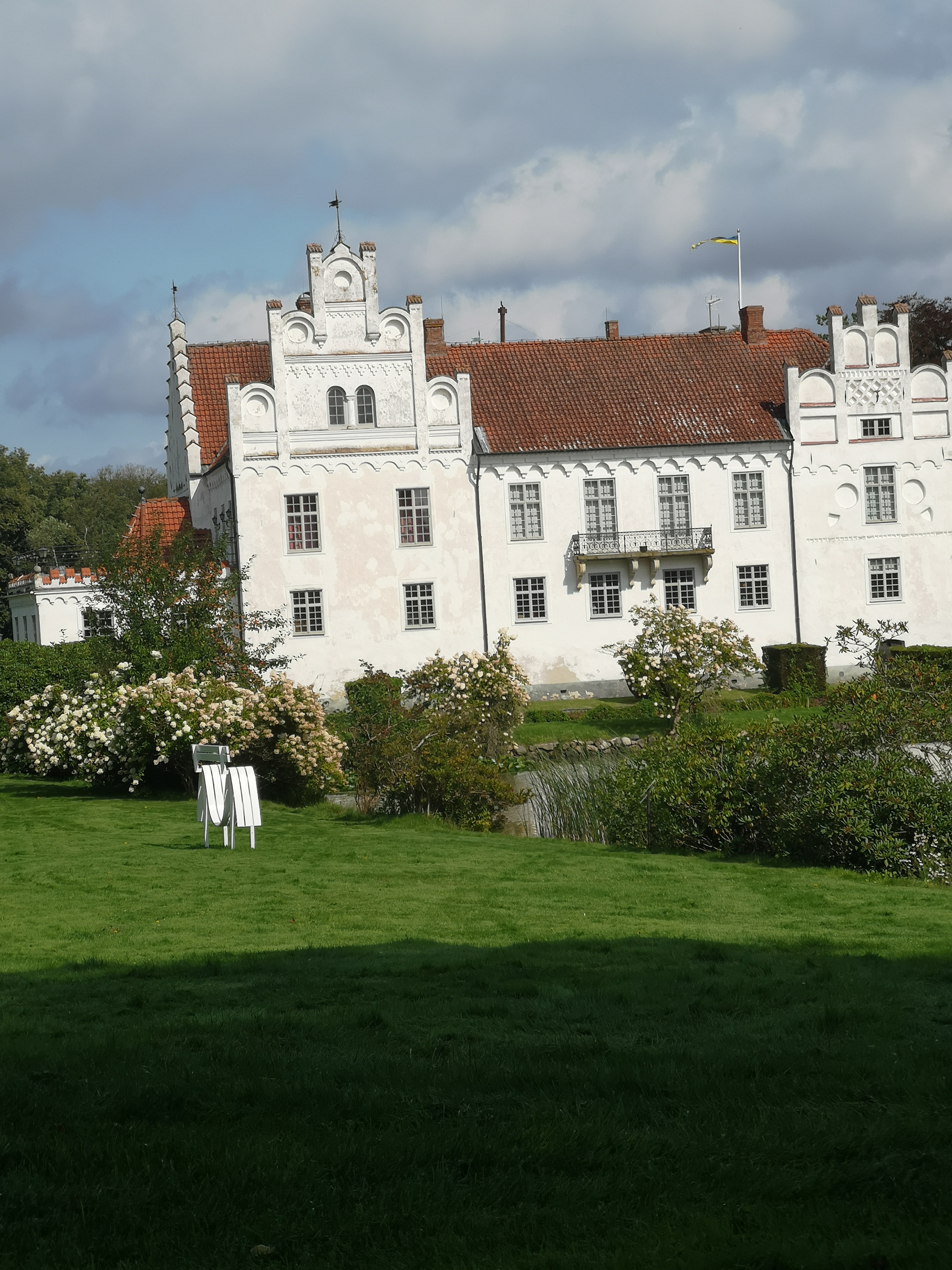 Wanås skulpturpark är tillgänglighetsanpassad till stor del. Café och butik/ reception går lätt att rulla in i och ta sig runt. Det är brett mellan varu- displayerna. Även inträdesplatsen vid parkeringen är lätt att passera. Dock behöver man någon som kan gå upp till kassan och betala, för upp till den lilla stugan är det svårare att komma. Troligen kommer de gärna ut och hjälper till då alla var väldigt hjälpsamma så det bör inte vara något större problem. Bredvid snurran som gående passerar genom finns en grind för rullande. Utställningarna finns som sagt i parken och i befintliga gamla lador, sädesmagasin eller andra bruksbyggnader runt slottet. Alltså är alla installationer som finns i husen olika svåra att besöka. Detta året fanns en installation till exempel, i en stor lada med mjukt sandgolv och en annan några trappor ner med lågt i tak. Den får man avstå om man rullar. I parken däremot, fungerar det bra att rulla på de flesta ställena. Jag såg permobilbrukare, rollatoranvändare och sen då jag med min lilla scooter. Vi har inte besökt restaurangen eller hotelldelen som ligger ”bredvid” så där är det nog bra att kolla upp tillgängligheten innan besök. Toaletterna i cafeet är ganska många och det finns toa för rörelsehindrade. Lite krokigt att ta sig fram till den om man är helt ”hjulbent.” Det fanns förr om åren även toa vid picnicborden om jag minns rätt men jag är osäker på om jag såg dem detta år.