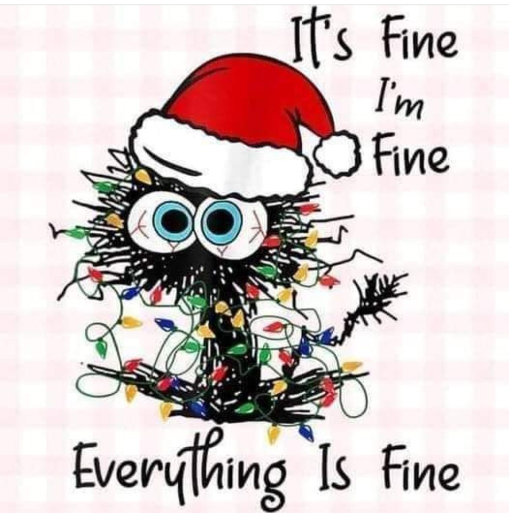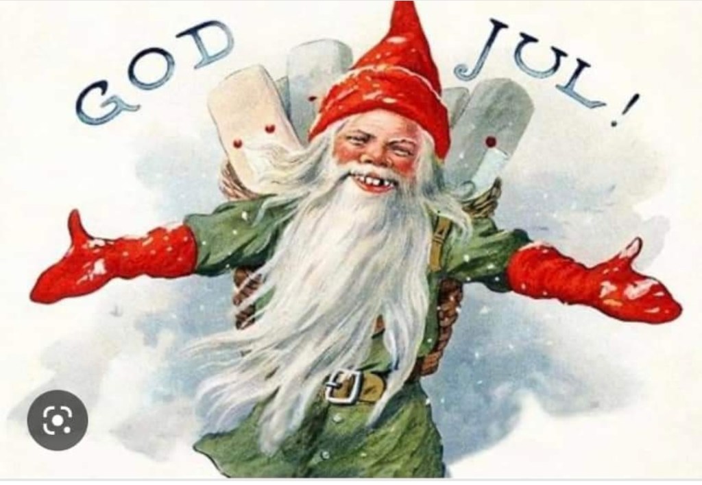 Jag haltade eller rullade fram och tillbaks för att hålla ordning, få undan och få fram. Tomten kom såklart. Och såklart var det jag som skulle vara tomte för ingen av de andra var hågade. ”Mamma är ju så rolig som tomte” eller ” Nä, jag vill(kan) inte, då struntar vi hellre i det”. Så ja, jag drog på mig tomtemasken över den leende masken jag klistrat på mig några timmar tidigare och tomtade. Tomtetanten snubblade mer och mer på orden och pratade mer och mer rappakalja. Jag förstod inte rimmen, kunde knappt se texten och orkade inte lyfta paketen så maken fick ändå hjälpa Tomtetanten framför familjen trots att han minsann inte själv ville vara tomte. Jo, jag låter nog lite bitter här.